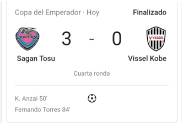 En este momento (56´) fue cuando el técnico del VISSEL, TAKAYUKI dio salida a nuestro paisano al campo. De aquí en adelante se notó que ANDRÉS estaba en el campo, dándo detalles de juego a escala superior, con conducciones, taconazos, repartición de juego y pases en profundidad, además de alguna ocasión que tuvo a disparo desde fuera del área, aun así los de casa volvieron a marcar por mediación del NIÑO TORRES que salió en el (60´) y que hizo su primer tanto desde que llegó a Japón.